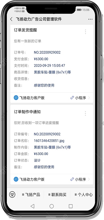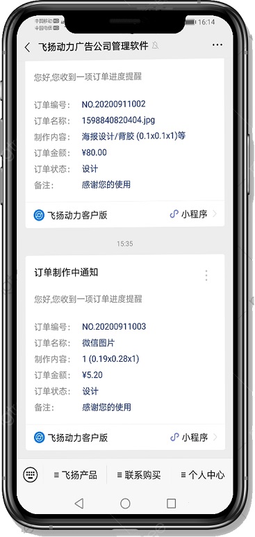 廣告公司開單后,消費者可以通過公眾號實時接收到訂單信息,了解自己訂單情況,提高客戶體驗。